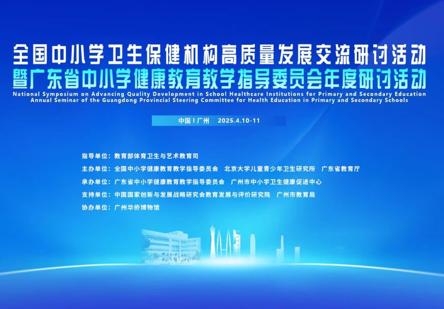 2025年4月10至11日,“全國(guó)中小學(xué)衛(wèi)生保健機(jī)構(gòu)高質(zhì)量發(fā)展交流研討活動(dòng)暨廣東省中小學(xué)健康教育教學(xué)指導(dǎo)委員會(huì)年度研討活動(dòng)”在廣州成功舉辦?;顒?dòng)由教育部體育衛(wèi)生與藝術(shù)教育司指導(dǎo),全國(guó)中小學(xué)健康教育教學(xué)